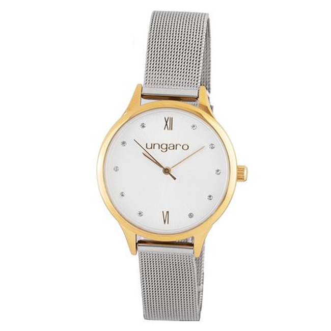 - Минималистичният бяло - златен циферблат е украсен със кристали.