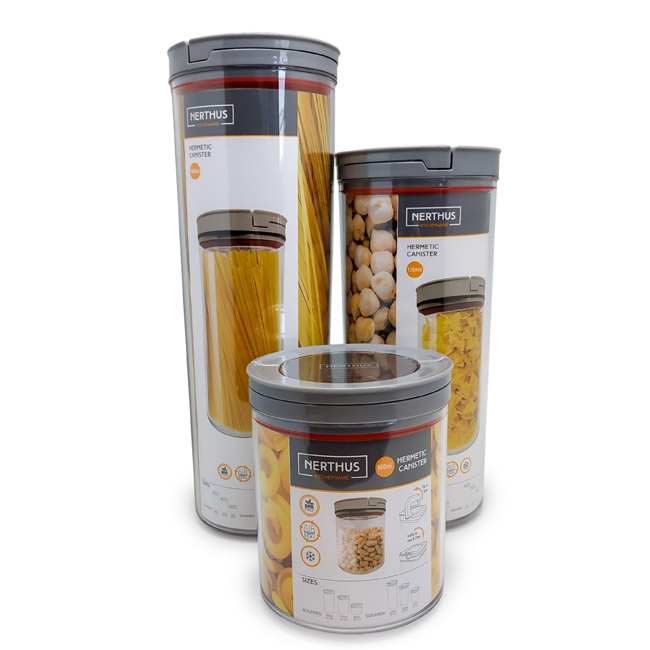 Високо качество, красив дизайн и изключителна функционалност ще откриете с серията канистери на с херметическо затваряне на Nerthus.
