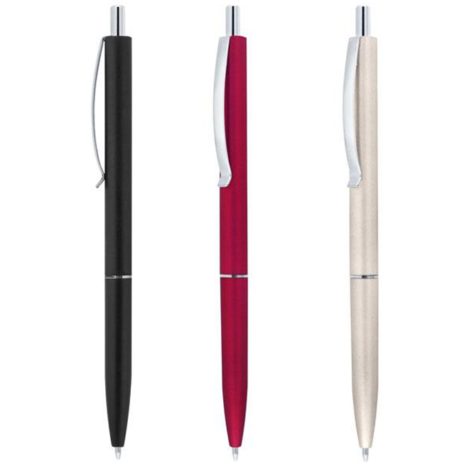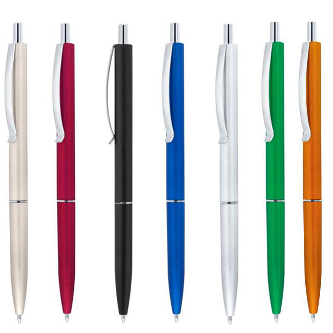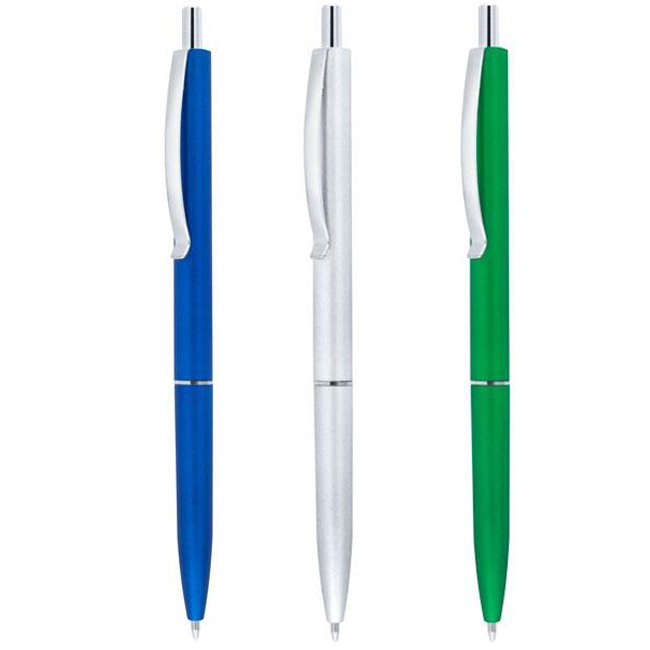 Цветна пластмасова химикалка със сребърен ринг
