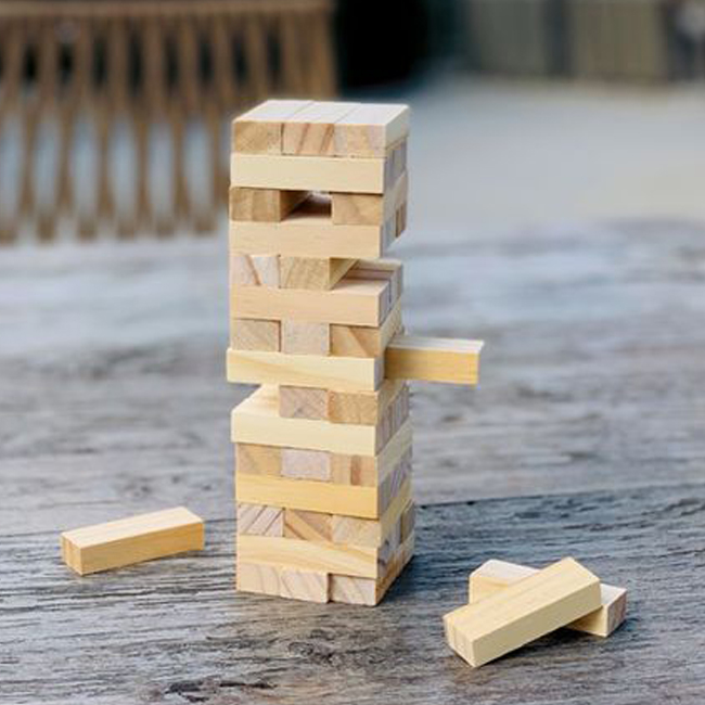 • Извади дървените блокчета от изградената кула и ги постави отгоре - без да събориш кулата!