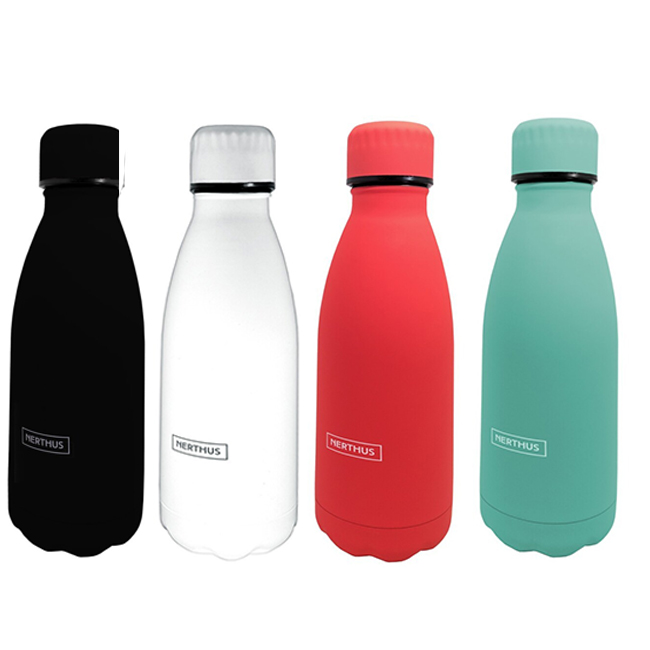 Двустенната бутилка от неръждаема стомана на Nerthus дава възможност да се поддържа температурата на консумация на топли и студени напитки за няколко часа.
