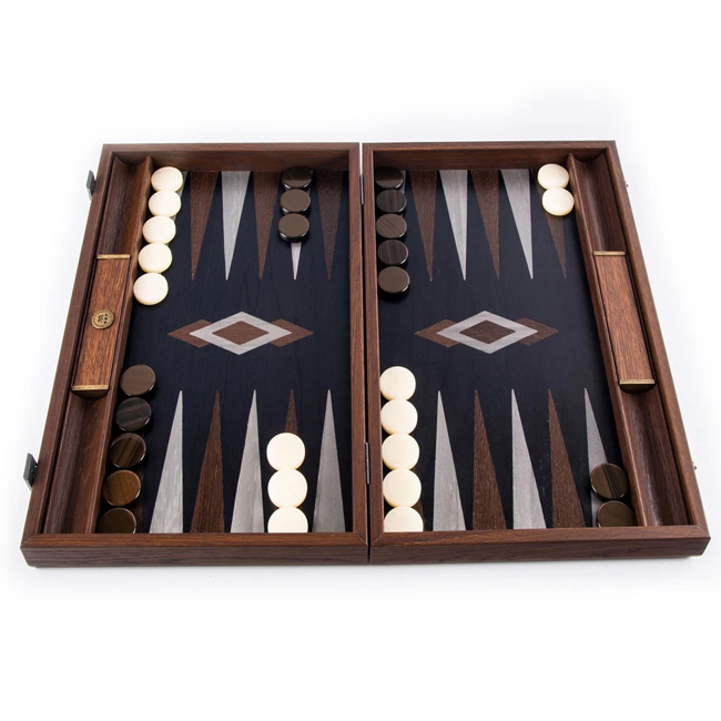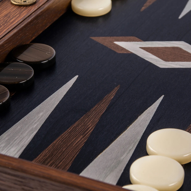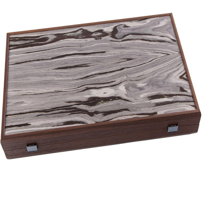 Таблата е ръчно изработена чрез техника Интарзия, наричана също Инкрустация, при която различните видове фурнир се режат на фигури от майстори артисти. Впоследствие фигурите се подреждат и влагат една в друга. По този начин се получава игрално поле с невероятна красота.