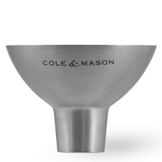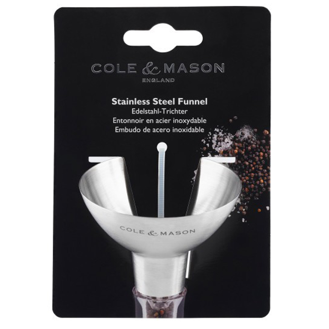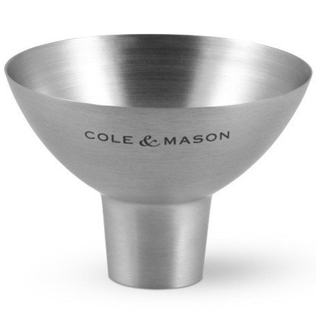 Фунията от неръждаема стомана ще улесни повторното пълнене на мелнички за сол и черен пипер, шейкъри, буркани за подправки, както и диспенсери за олио и оцет. Тя е здрава, с изчистен дизайн, спестява място и намалява бъркотията, която може да се направи при презареждане. Полезен малък аксесоар за всяка кухня. Фунията има лазерно гравирано лого, което е дълготрайно и няма да се изтрие с износване.