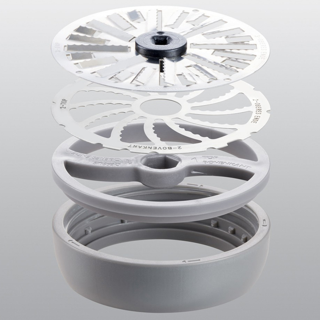 • Система от три ножа, която разкъсва, разрязва и отделя замразените подправки