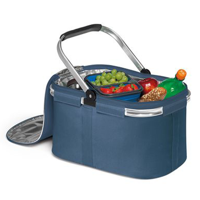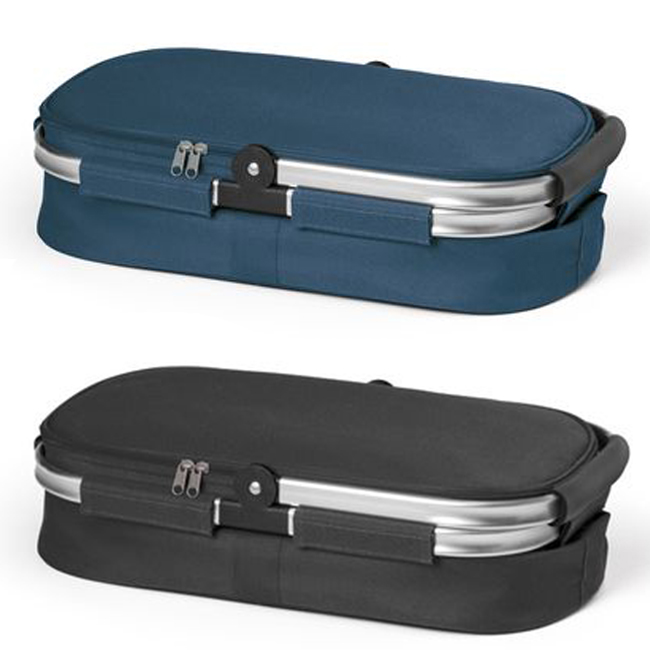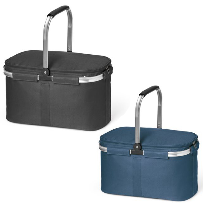 Кошница за пикник с термо подплата. Удобен двустранен цип и сваляема алуминиева рамка с ергономична дръжка, подплатена с EVA.