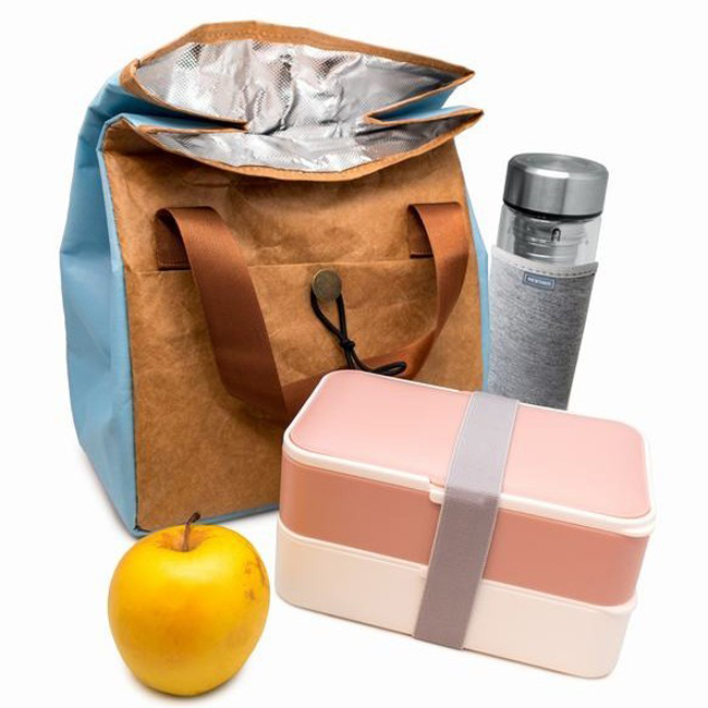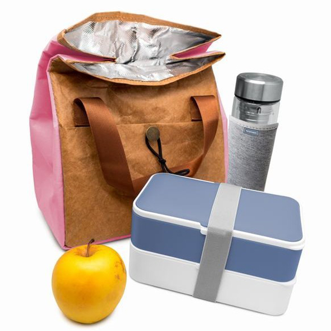 С вместимостта си от 8 л., чантата е достатъчно голяма за две големи кутии за храна, бутилка с напитка и един плод.