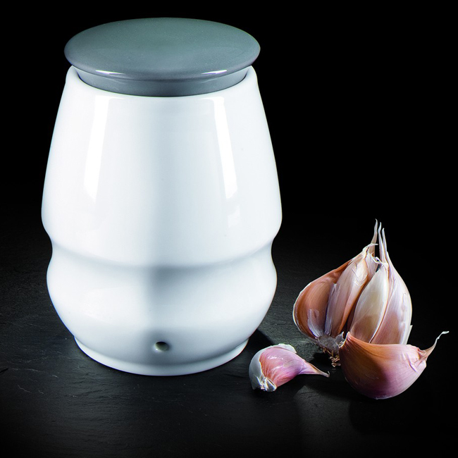 Проектиран да изглежда чудесно на всеки кухненски плот и кухня, този керамичен канистер за съхранение на чесън е необходимост за всеки дом.