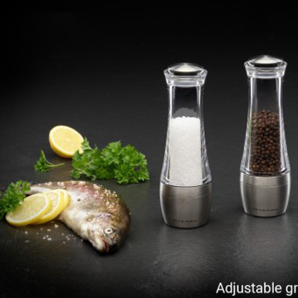 Класическият дизайн на мелничката от акрил добавя изтънченост към всяка маса, като същевременно остава ежедневен кухненски аксесоар. Регулирайте степента на меленето от фино до едро чрез затягане или разхлабване на топчето на капака. Мелничките AMESBURY разполагат с механизъм от закалена въглеродна стомана (за мелничките за пипер) и усъвършенстван керамичен механизъм (за мелничките за сол). Механизмът Cole & Mason Precision не смачква зърната черен пипер, а ги стрива, за да освободи максималното количество аромати при всяко завъртане.
