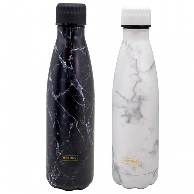 Двустенната бутилка от неръждаема стомана на Nerthus дава възможност да се поддържа температурата на консумация на топли и студени напитки за няколко часа.