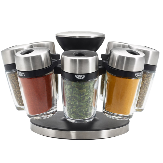 - 8 бр. стъклени бурканчета с подправки, с възможност за презареждане