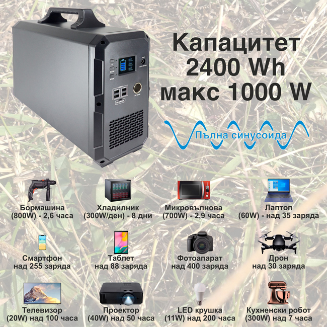 Преносима електроцентрала с капацитет на литиево-йонната батерия 2400Wh
