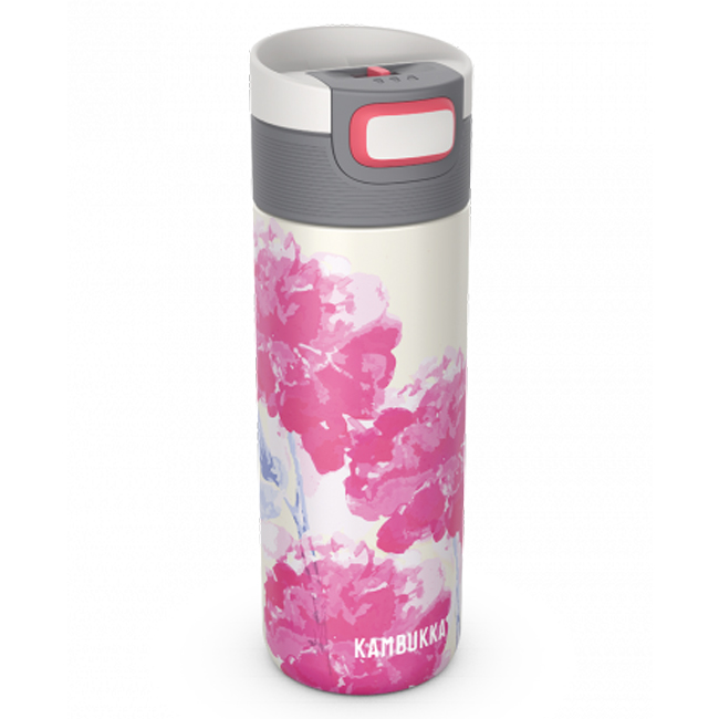 Термочаша от неръждаема стомана Kambukka Etna с термокапак 3 в 1 Snapclean®, 500 мл, розови цветя