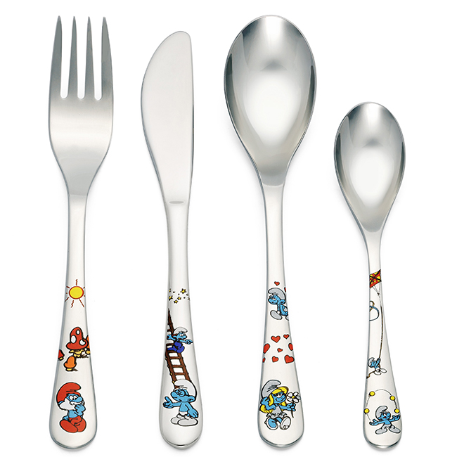 ZILVERSTAD Комплект детски прибори за хранене “Смърфове“ - 4 части