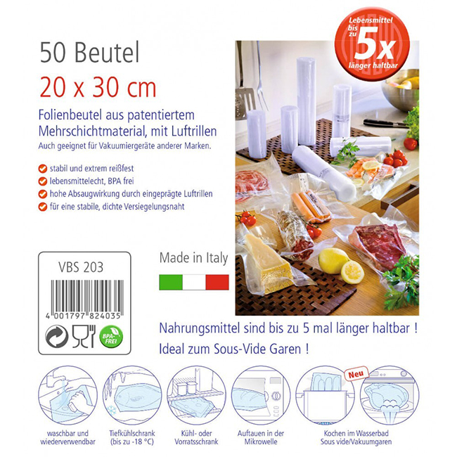 ROMMELSBACHER Двуслойни пликове за вакуумиране - размер 20х30 см. - 50 бр.