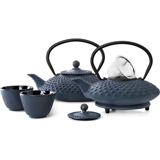 Този чугунен чайник от Bredemeijer® със своята шипована структура се предлага в различни цветове и с различна вместимост.