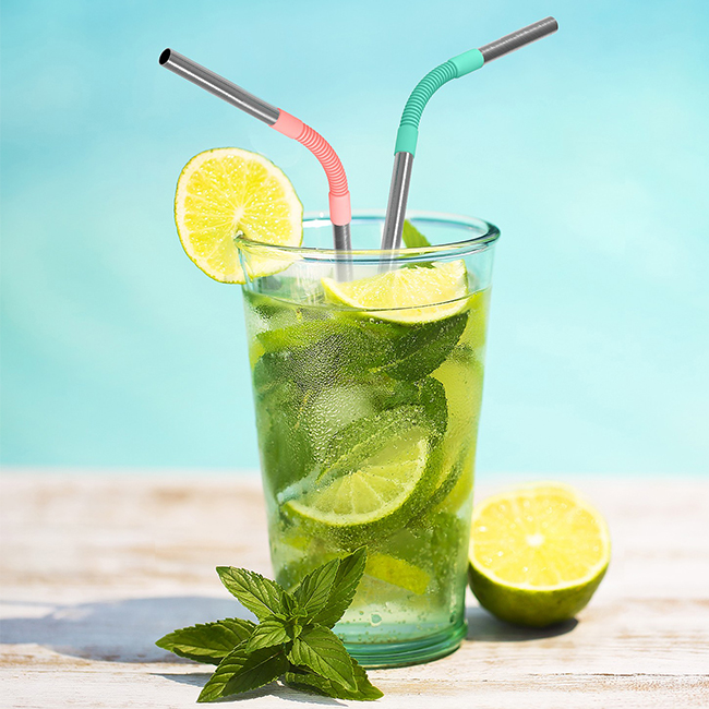 Изработени от рециклируема неръждаема стомана, тези сламки са снабдени с огъваща се силиконова секция, която ви дава достъп на 360 ° до вашата любима напитка.