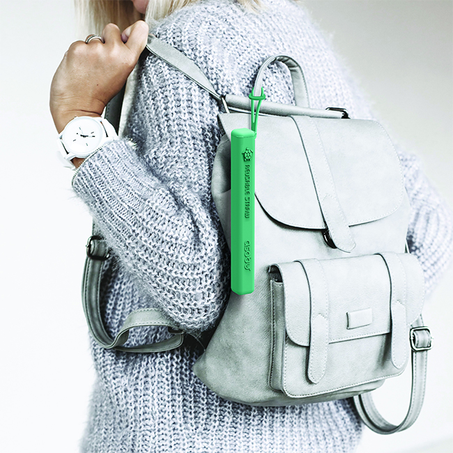 Сламките и гъвкавите силиконови секции се прибират спретнато в удобен силиконов държач.