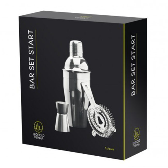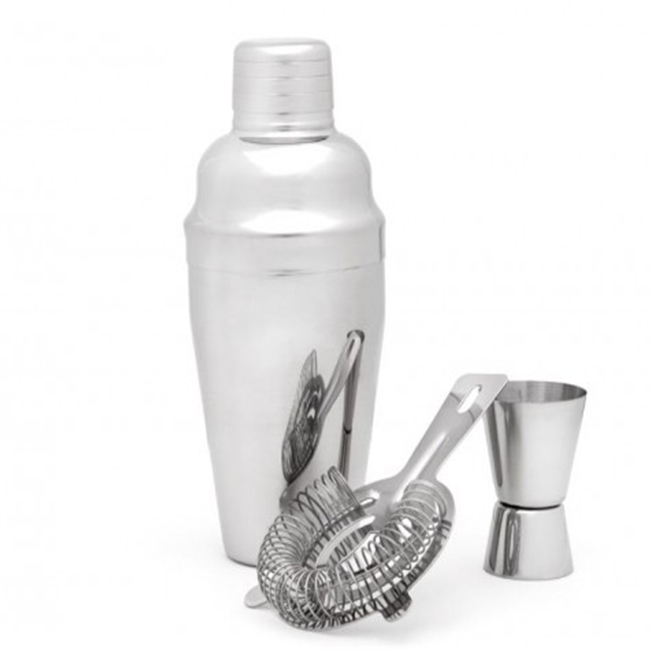 Започнете да правите коктейли с този удобен сет! Комплектът се състои от шейкър, цедка и джигър за измерване. Шейкърът е с вместимост 500 мл. и вградена цедка.