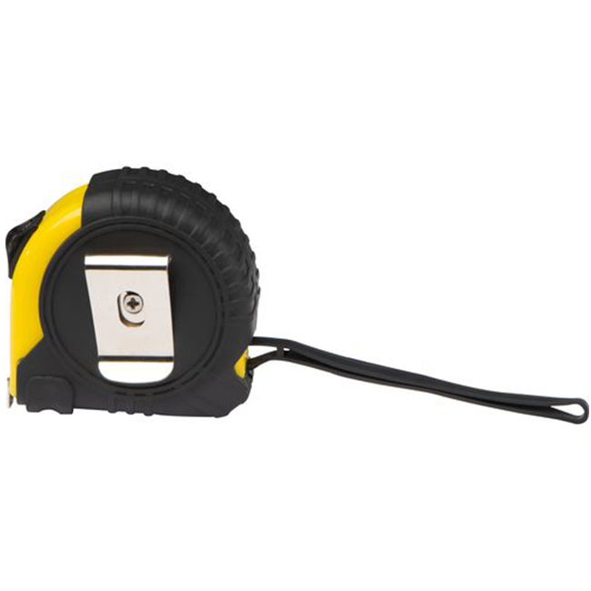 Пластмасова ролетка - с дължина 5 м, гумирано тяло, каишка за ръка и щипка за закачане на колан.