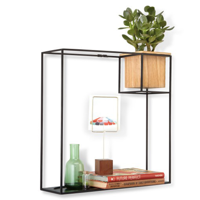 UMBRA Рафт / органайзер за стена със сандъче за цветя “CUBIST“ - размер голям - цвят бук/черен