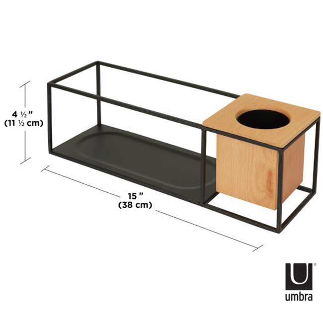 UMBRA Рафт / органайзер за стена със сандъче за цветя “CUBIST“ - размер малък - цвят бук/черен