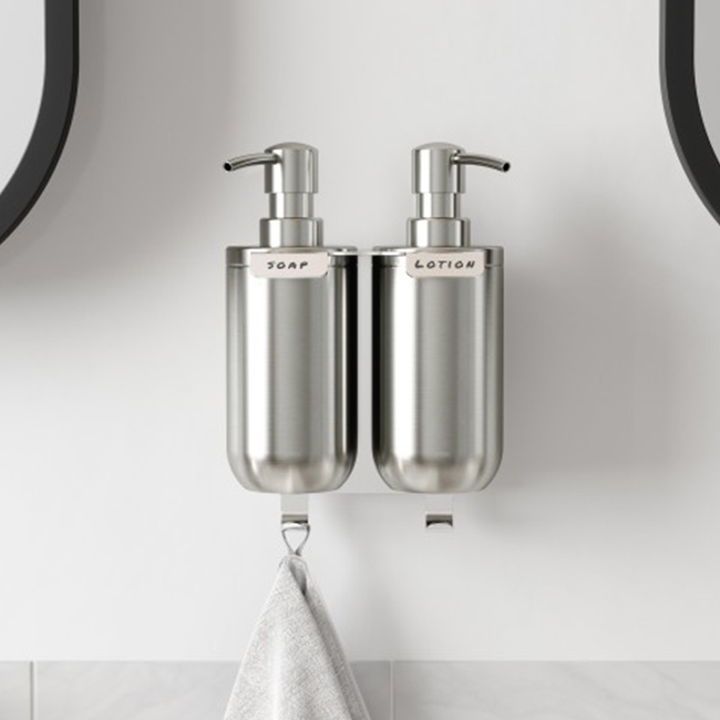 UMBRA Сет от 2 бр. диспенсър за сапун за стенен монтаж със закачалка “JUNIP“ - неръждаема стомана