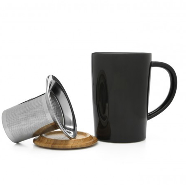 BREDEMEIJER Порцеланова чаша за чай с филтър и капак - черна - 400 мл.