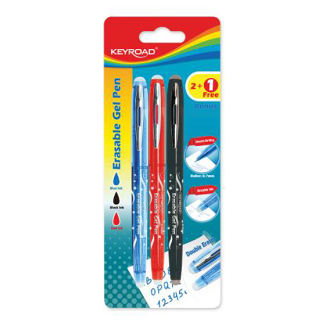 Химикалка изтриваема, 3 броя блистер - син, черен и червен