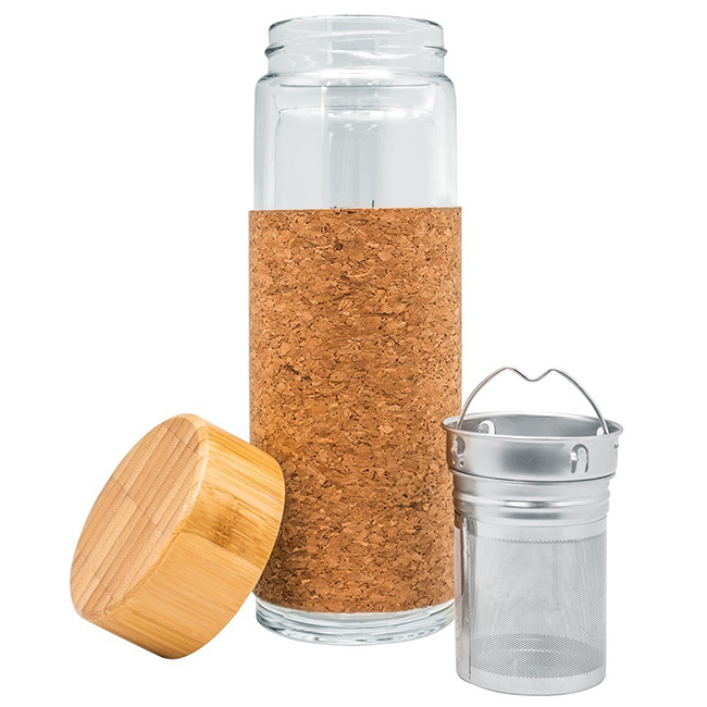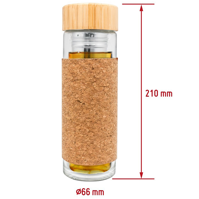 Nerthus Двустенна стъклена бутилка с инфузер - “КОРК“ - 300 мл.