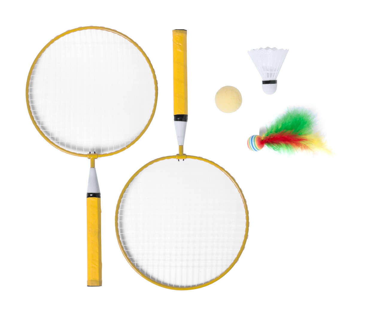 Комплект за бадминтон с 2 ракети, 2 вида перца и едно топче. Метал и дърво.
