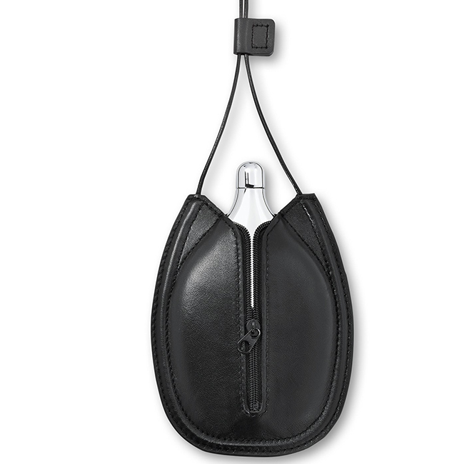 В комплект с елегантна кожена чанта с цип и регулируем шнур.