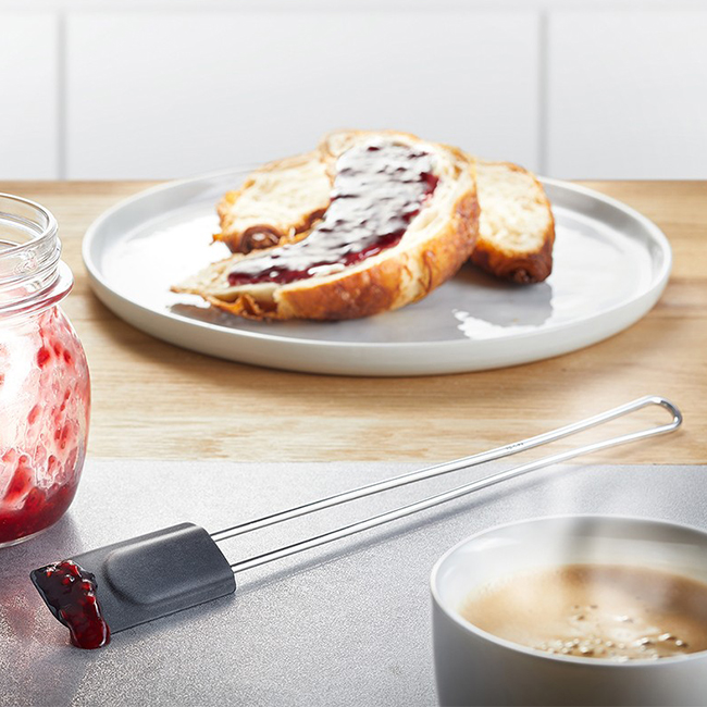 Идеална за пълно изпразване на купи с тесто, както и буркани с конфитюр. Освен това, с топлоустойчивия силикон, намазването на сладки или солени кремове върху тарталети или канапета е като детска игра.