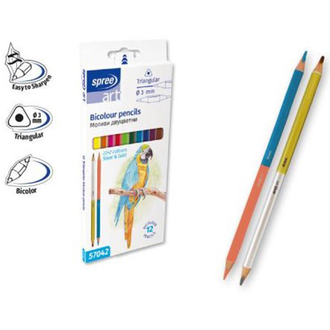 Моливи 12 x 2 цв. двуцветни, Bicolor триъгълни, Ø 3 мм графит