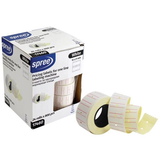 Етикети за 1 ред марк.клещи 21/12 мм с отвор, 800 бр., бял