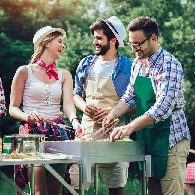 Комплект за барбекю от дърво и неръждаема стомана от три прибора. Комплектът съдържа вилица за скара, щипка и нож. Доставя се в твърд черен калъф.