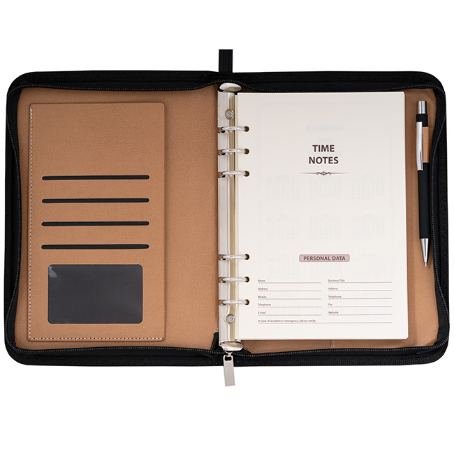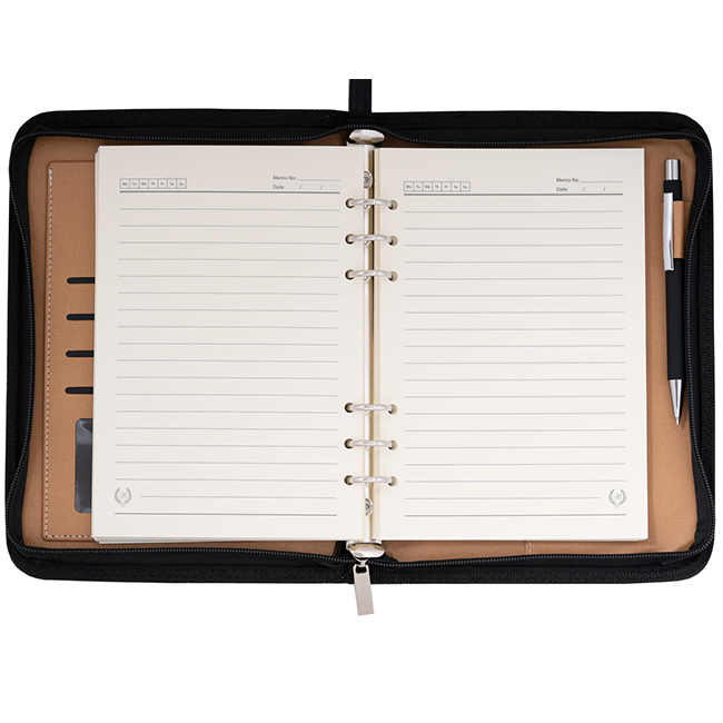 Стилен бележник-органайзер, формат A5 със спирала, цип за закопчаване и твърди корици от ЕКО кожа. Тялото на бележника е съставено от календар за 2022-2024 г. и 200 броя тонирани страници на редове и точки. Предлагаме ви висококачествената изработка, присъща за бранда F. Bartholdi. Химикалката не е включена. Без кутия.
