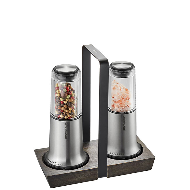 Висококачествената акация в комбинация с маншет и дръжка от матирана неръждаема стомана, правят тази атрактивна основа, перфектната поставка на продуктите за подправки ( мелници и канистери) X-PLOSION® в кухнята и на масата.