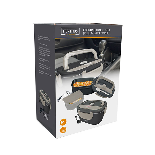 Новата електрическа кутия за храна на Nerthus има основен контейнер от стомана с две функции – затопляне на храната и поддържане на желаната температура, без да се налага да използвате микровълнова. Вторият контейнер е изработен от висококачествена пластмаса, с вместимост 60 мл., за да можете да добавите към обяда си сос или десерт. Двата контейнера са подвижни за лесно почистване, като могат да се мият в съдомиялна машина.