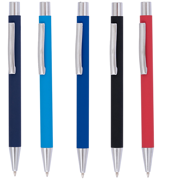 Антибактериална метална химикалка с меко покритие и хромирани елементи. Чудесен продукт за брандиране чрез лазерно гравиране.
