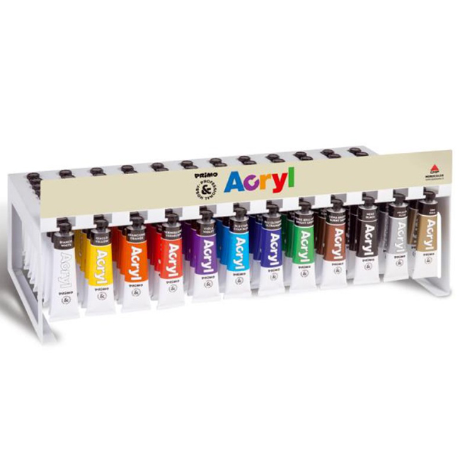 Дисплей акрилни бои алумин.тубички,12цв.x10х18 мл, 46.5х25.3х18.7