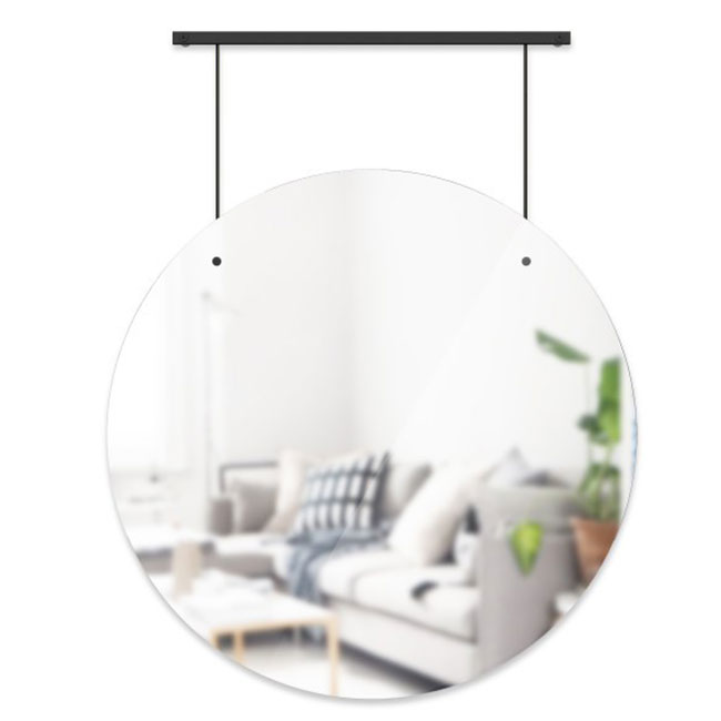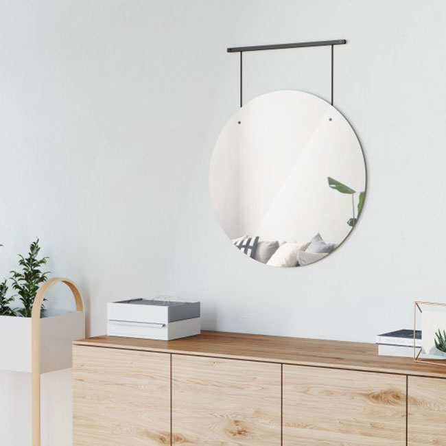 Уникално огледало с диаметър 66 см., висящо на метален прът, внася допълнително светлина във вашите помещения, докато модерният му дизайн създава акцент върху всяка стена.