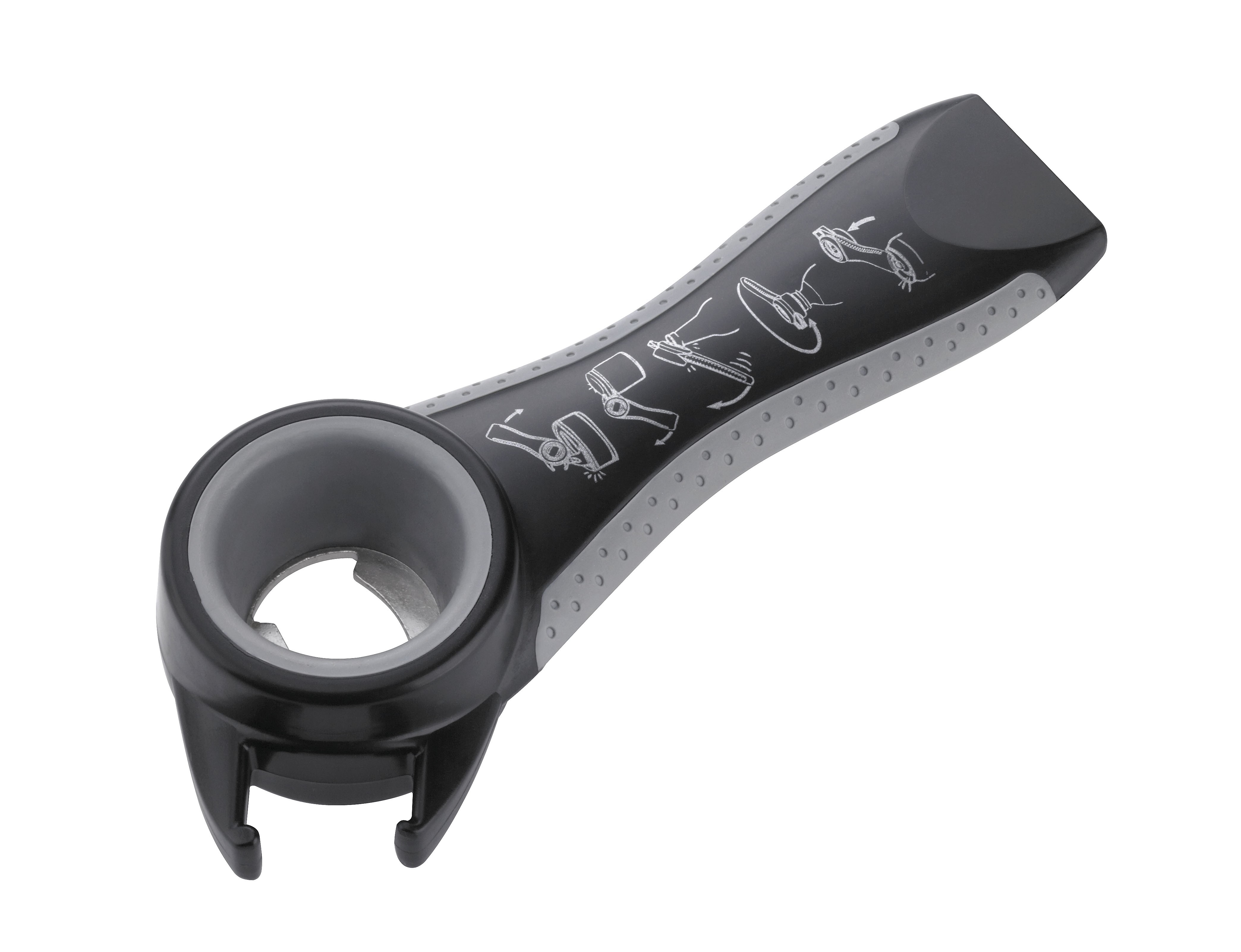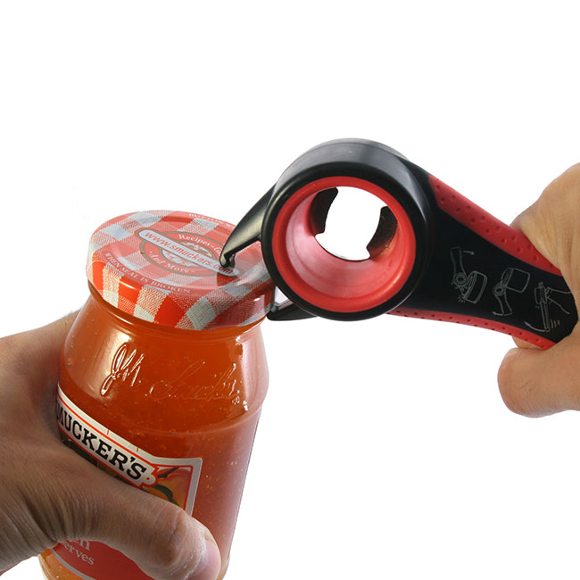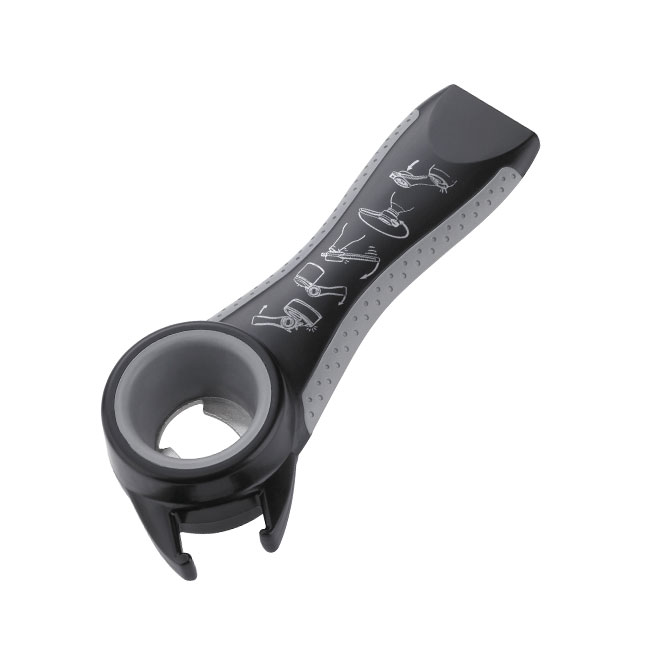 Тази отварачка е с практичен и модерен дизайн. Позволява Ви да отваряте различни видове капачки: винтови капачки с диаметър 27-31 мм., капачки за еднократна употреба за бутилки, капачки на буркани, капачки на кенове с течности, консервени кутии с капак с пръстен. Изработена е от висококачествена издръжлива пластмаса. Подходяща е за почистване в съдомиялна машина.