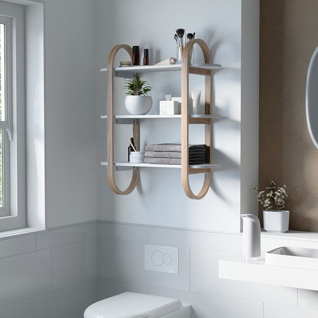 BELLWOOD е модерна стенна етажерка с три нива. Подходяща за помещения като хол, офис, спалня, баня и др