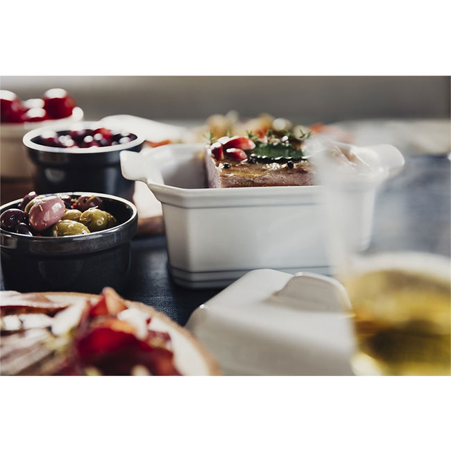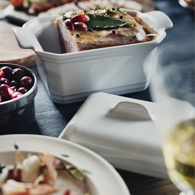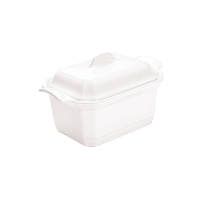 EMILE HENRY Керамична форма за терин с преса TERRINE WITH PRESS - 19 х 12 см - цвят бял