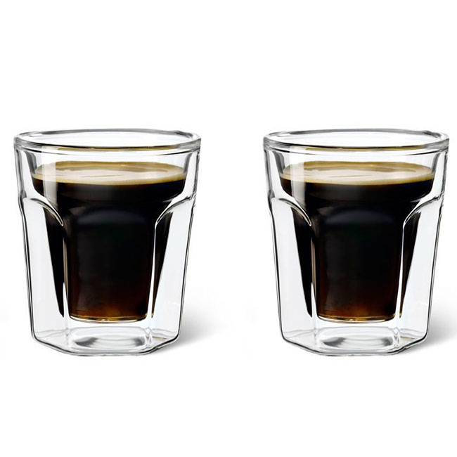 - Комплект 2 чаши за еспресо с вместимост 100 мл. Чашите за еспресо двустенни, така че да запазват температурата по-дълго.
