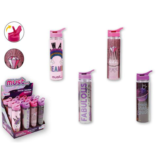 Бутилка за вода Glitter, 450 мл, 4 дизайна, 7.1x27.3