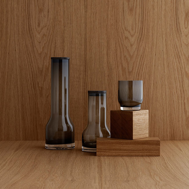 LUNGO се състои от гарафа (в два размера и в два цвята) и чаши за пиене.