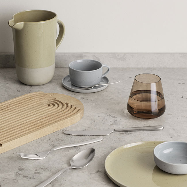 С гланциран интериор и леко грапав екстериор, съдовете от серията създават спокойна и стилна атмосфера на масата.