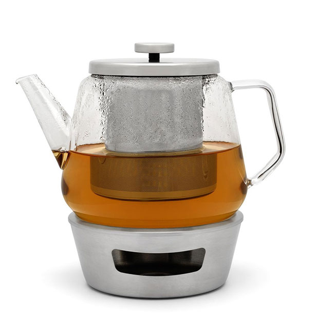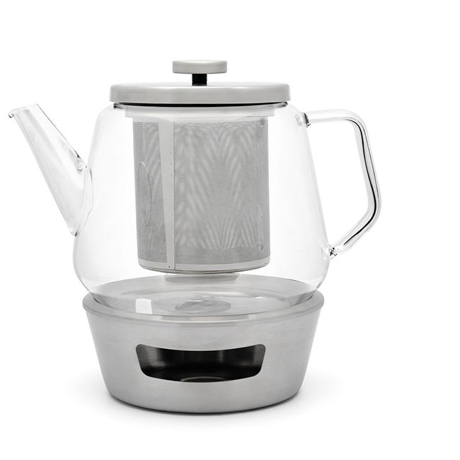 Комплектът за чай Bari се състои от стъклен чайник и приставка за подгряване. Елегантният дизайн придава на комплекта модерен външен вид и излъчване. Чайникът е изработен от едностенно боросиликатно стъкло, което има по-дълъг живот от повечето видове стъкло и е топлоустойчиво. Използвайте филтъра от неръждаема стомана за насипен чай и поставете чаена свещ в поставката за подгряване, за да запазите чая си хубав и топъл за по-дълго. Чайникът е с вместимост 1,5 литра, което е еквивалентно на 6 чаши.