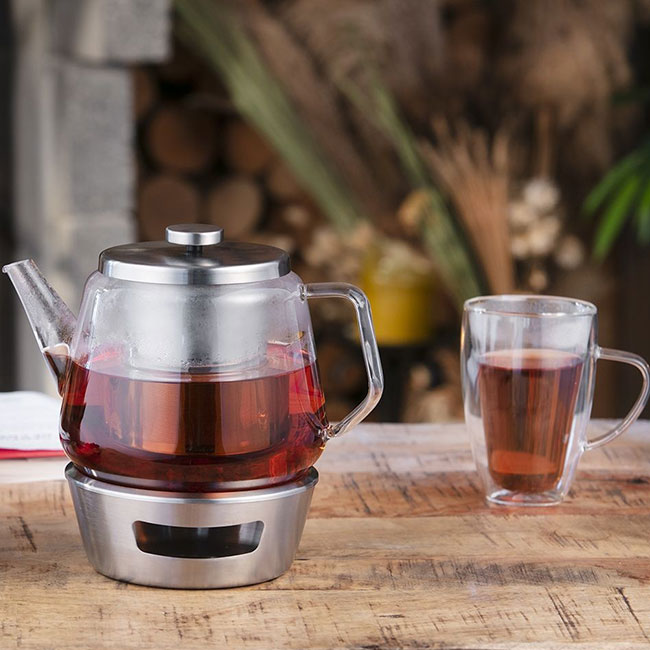 - Сет стъклен чайник “BARI“ с приставка за подгряване - 1,5 л.